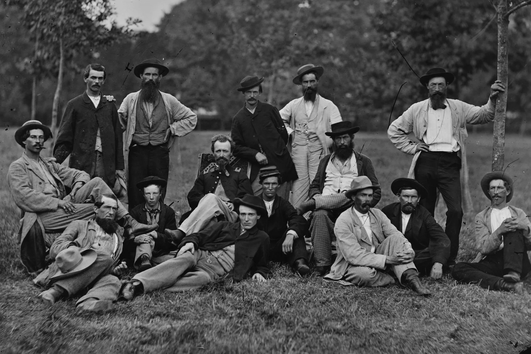 Cpt Milton Cline (seated center) with his scouts including his second in command Daniel Cole (seated right of Cline)